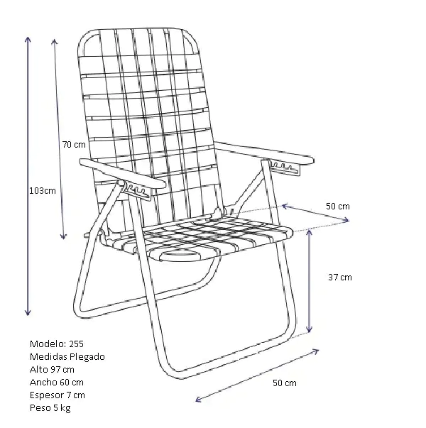 • Plegado :  97 cm alto 67cm de ancho x 7cm de espesor