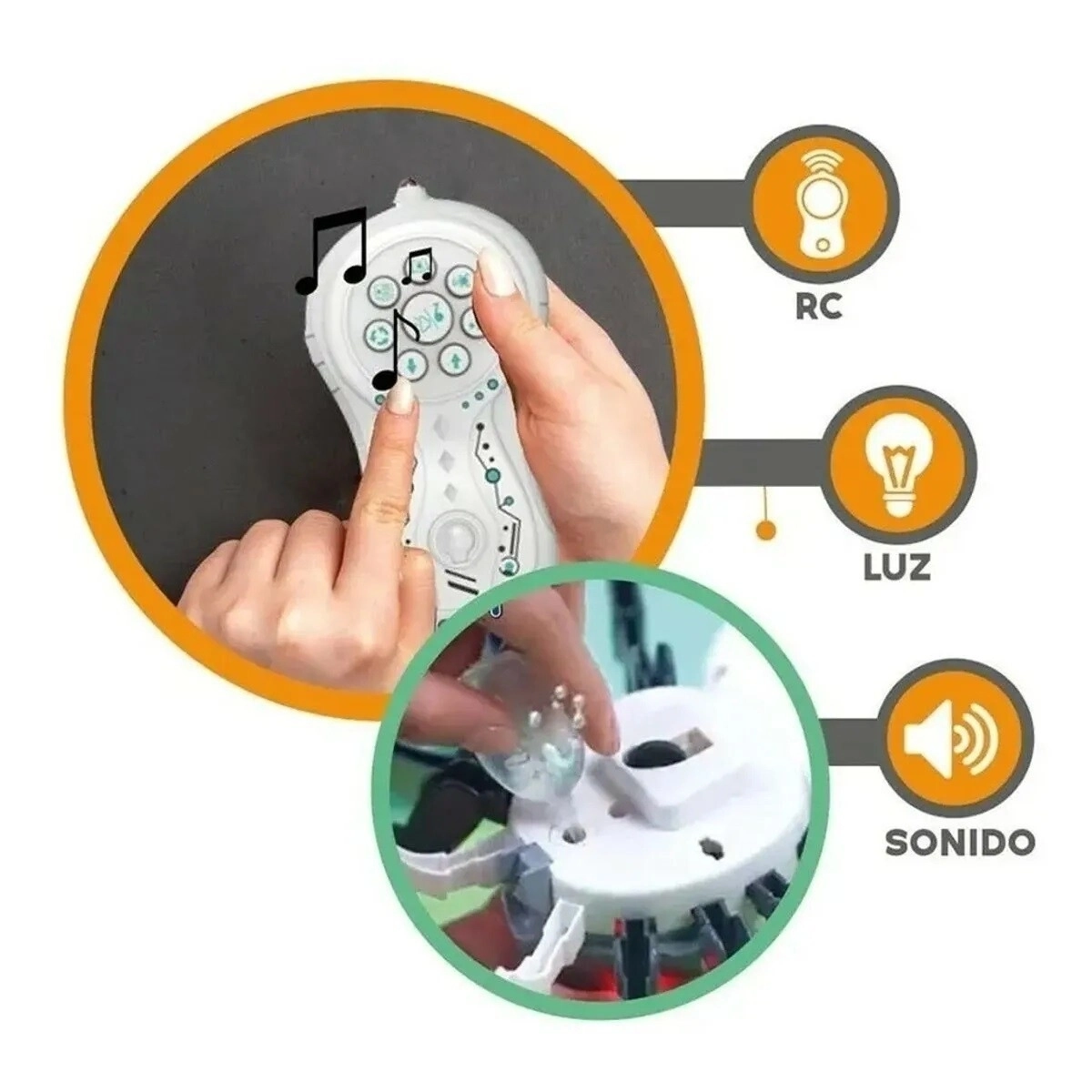 El control remoto tiene varias funciones como ir hacia adelante, hacia atrás, hacia la derecha e izquierda. También tiene modo automático que da vueltas sola.