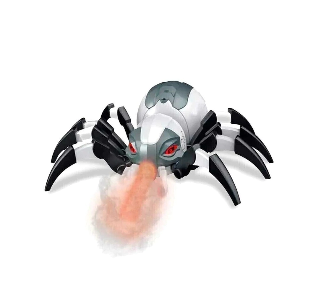 Diseño fantástico con función de pulverización de niebla: la araña puede pulverizar niebla con luz roja cada varios segundos, como si el fuego brotara de la boca. Hay una caja de agua incorporada en la cabeza, y solo necesita usar la botellita de plástico provista para llenar el agua en el orificio.