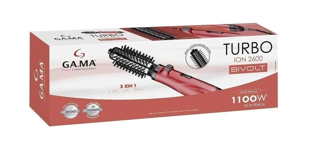 El GA.MA Turbo Ion 2600 es un multistyler rotativo 3 en 1 que combina secador, peine y cepillos moldeadores para ofrecerte un peinado completo con un solo equipo.